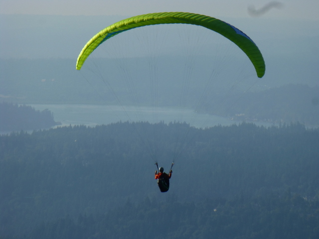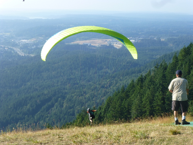 We finally get up to the top where the pilots are launching and I was immediately in awe. They were flying! I couldn’t wait for Matt to launch. Even though I am terrified of heights, within 10 minutes of hitting the summit I said to him “I want to do that someday”. He replies “why not today?”. HMM…why not indeed. So I did it. No plan, no arguing, totally spontaneous. I even surprised Matt, who without telling me, had planned it out ahead of time with his friend Mark from Seattle Paragliding. Matt was expecting to have to argue with me to get me to do it.