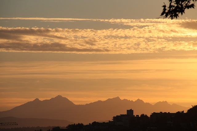 Sunset overlooking the Olympic Mountains and Queen Anne